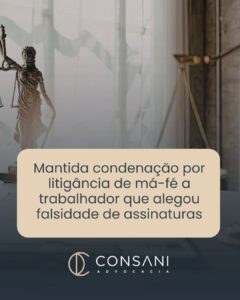 Os julgadores da Décima Primeira Turma do TRT-MG mantiveram a condenação de um trabalhador ao pagamento de multa por litigância de má-fé, após concluírem que ele alterou a verdade dos fatos ao alegar que não havia assinado documentos rescisórios, contrariando perícia grafotécnica determinada no processo.